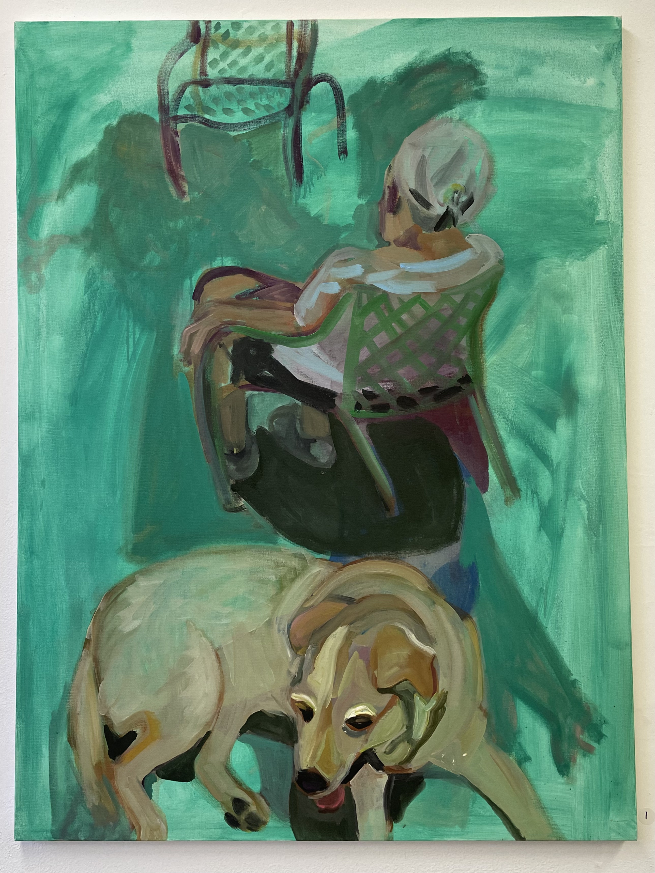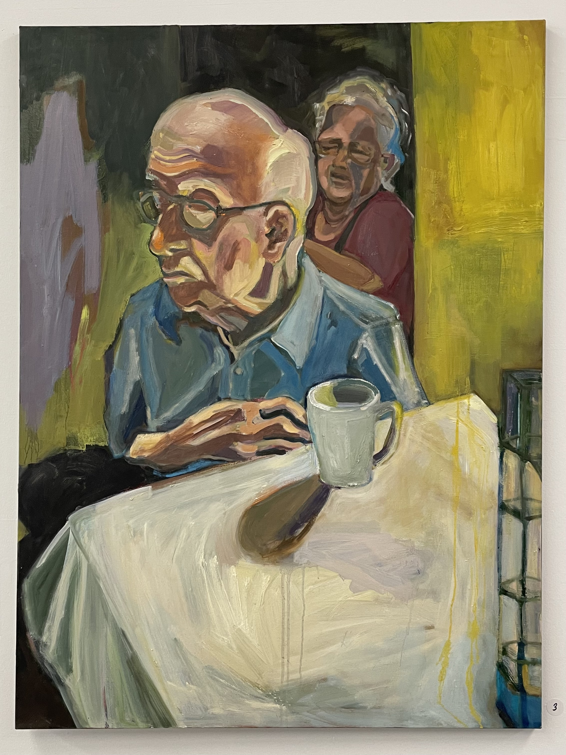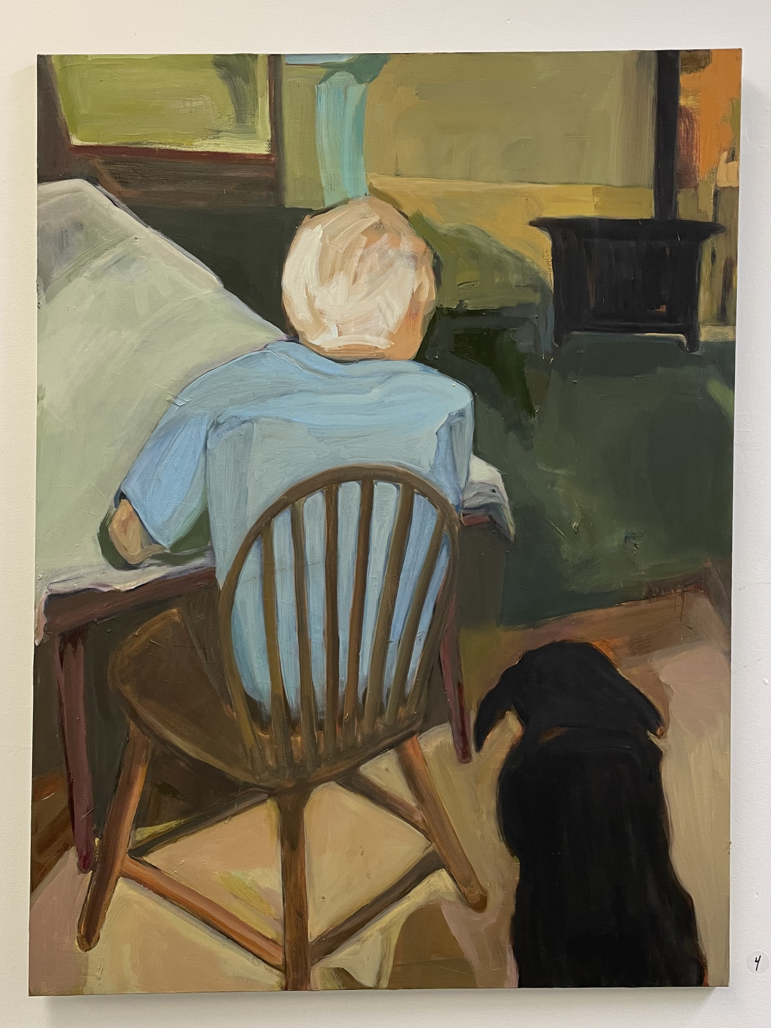 “Waiting for the Airplane or Death, Whichever Comes First (Middle Age),” oil on canvas, 24 x 30, 2020.