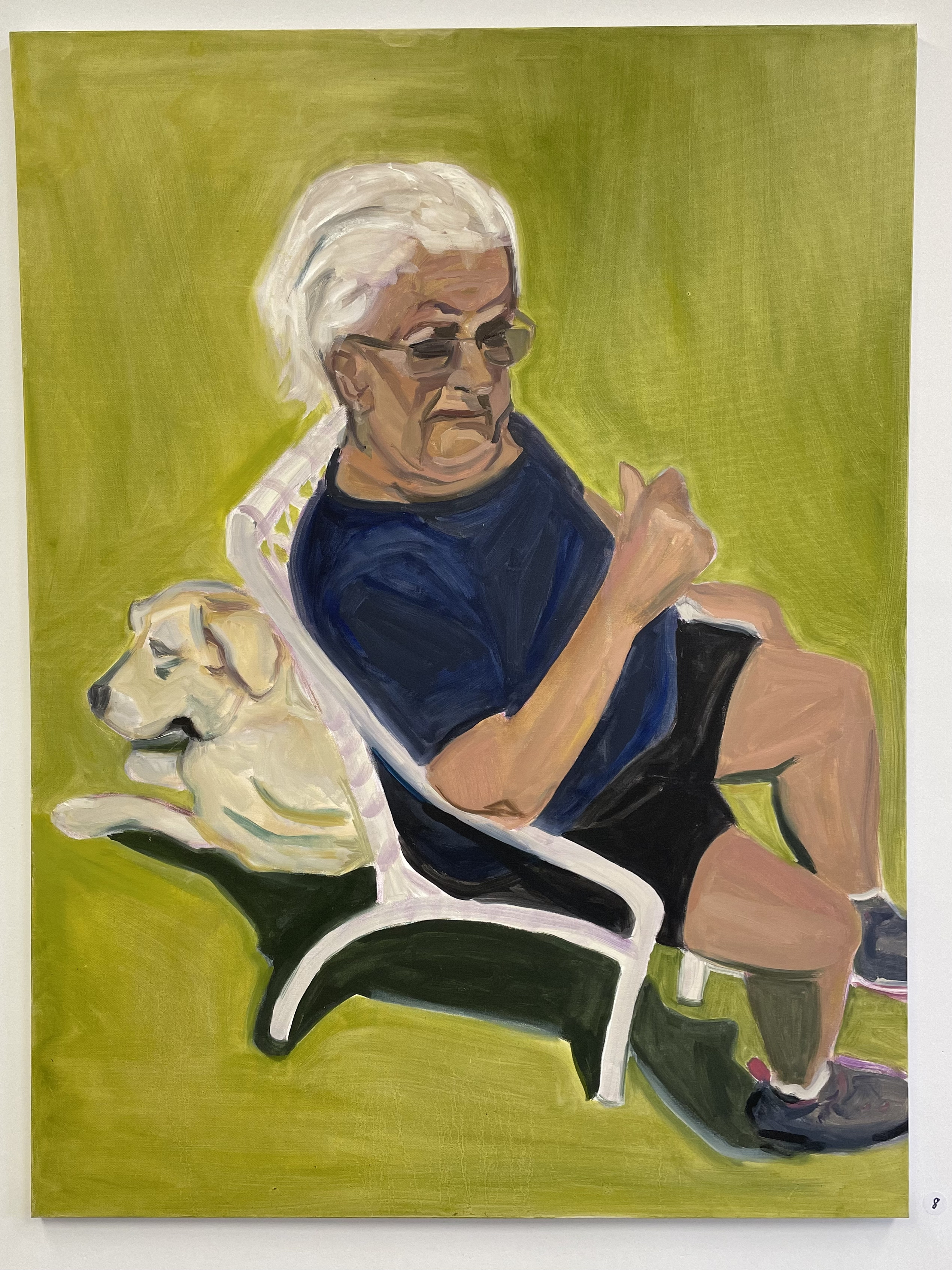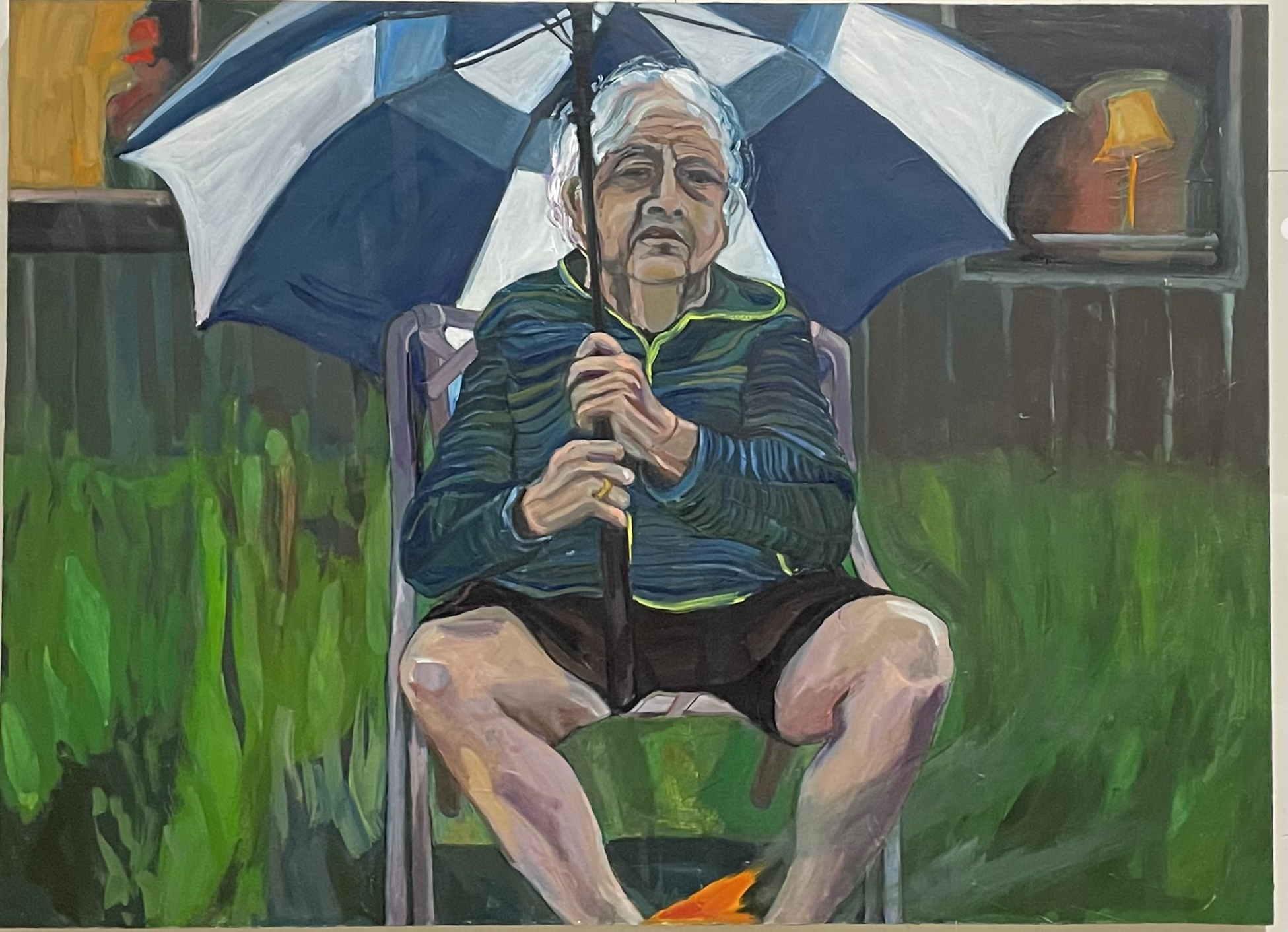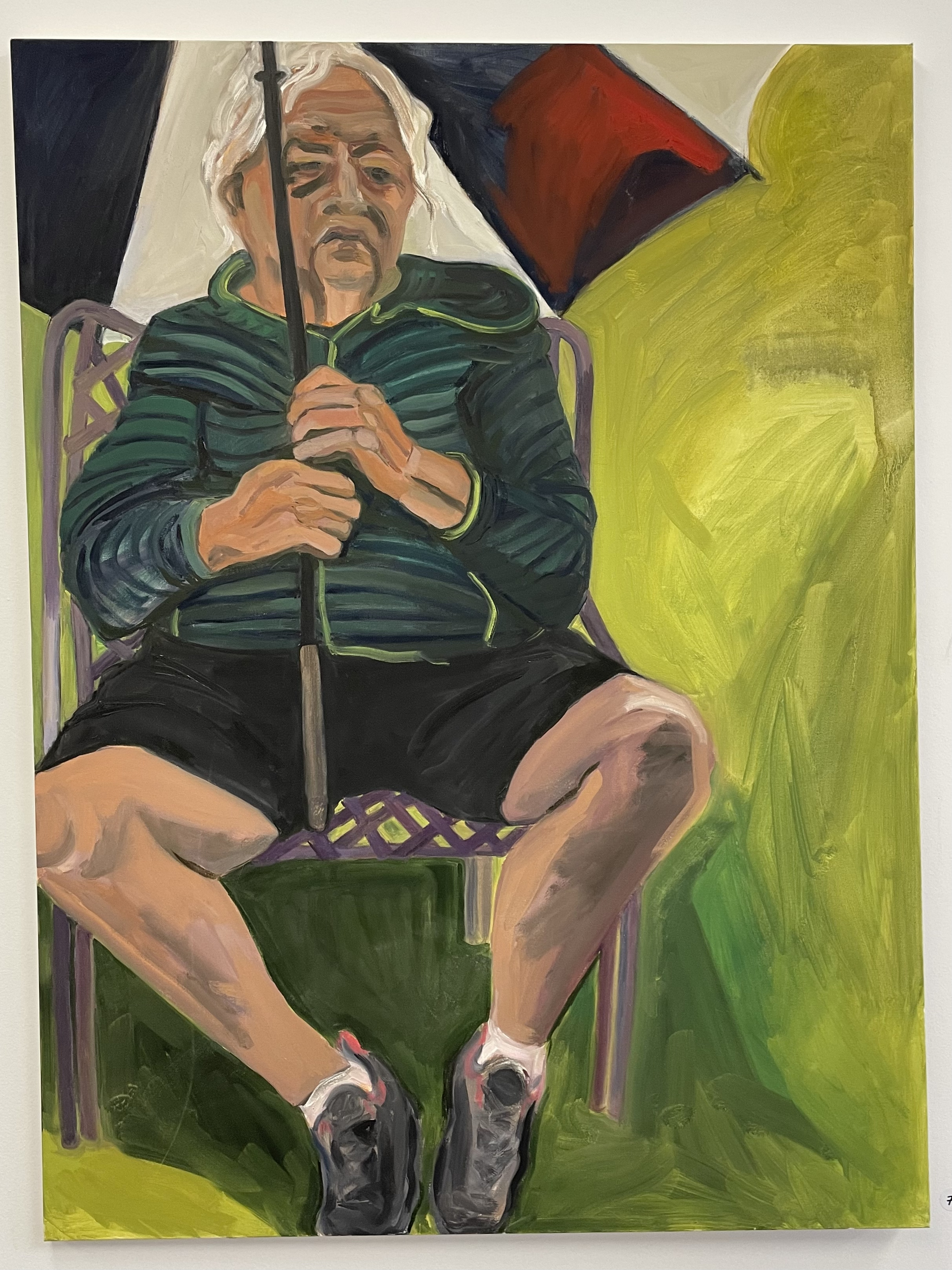 “Waiting for the Airplane or Death, Whichever Comes First (Middle Age),” oil on canvas, 24 x 30, 2020.