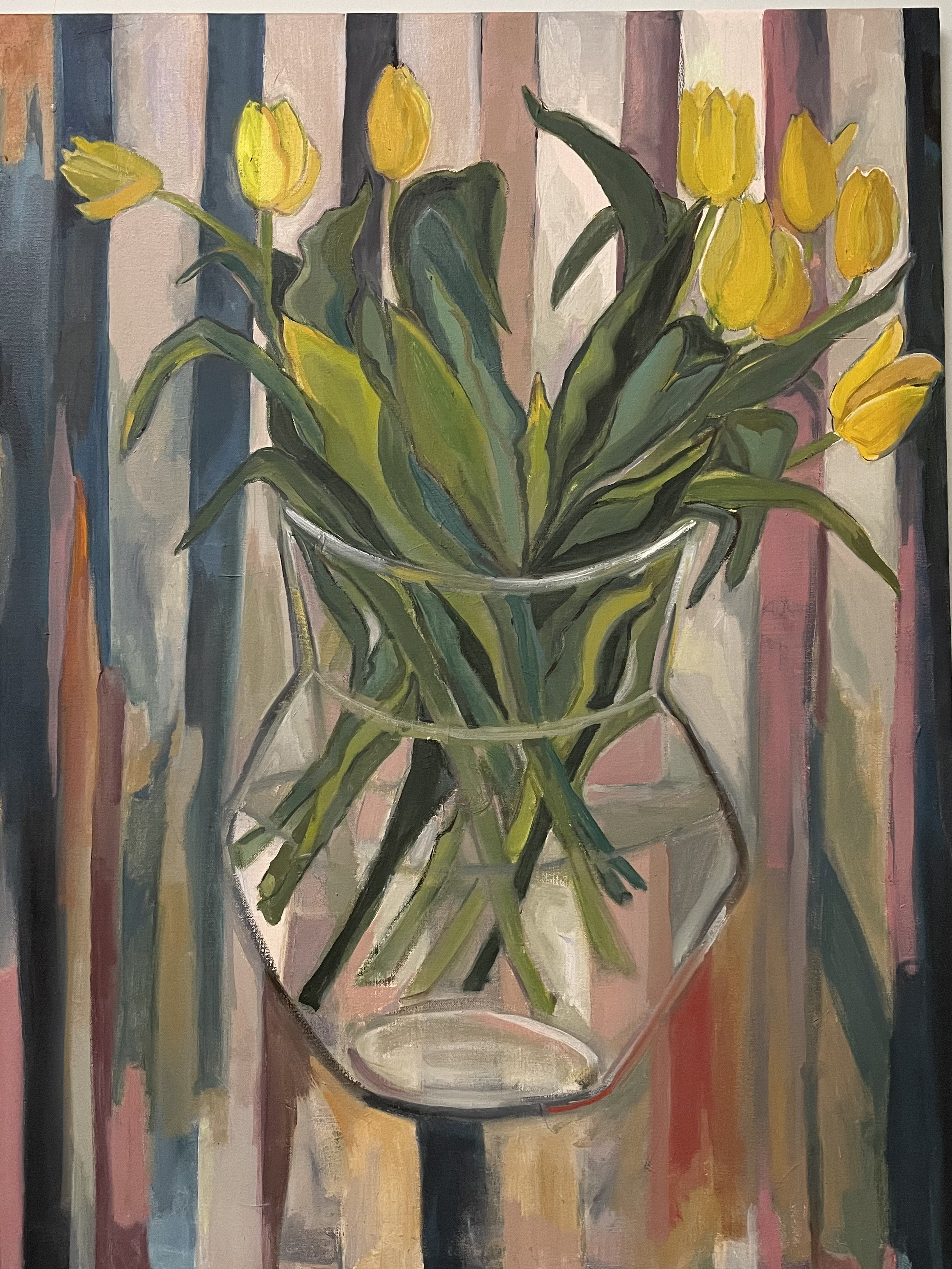 “Stripes and Flowers,” Oil on canvas,36 x 48, 2020.