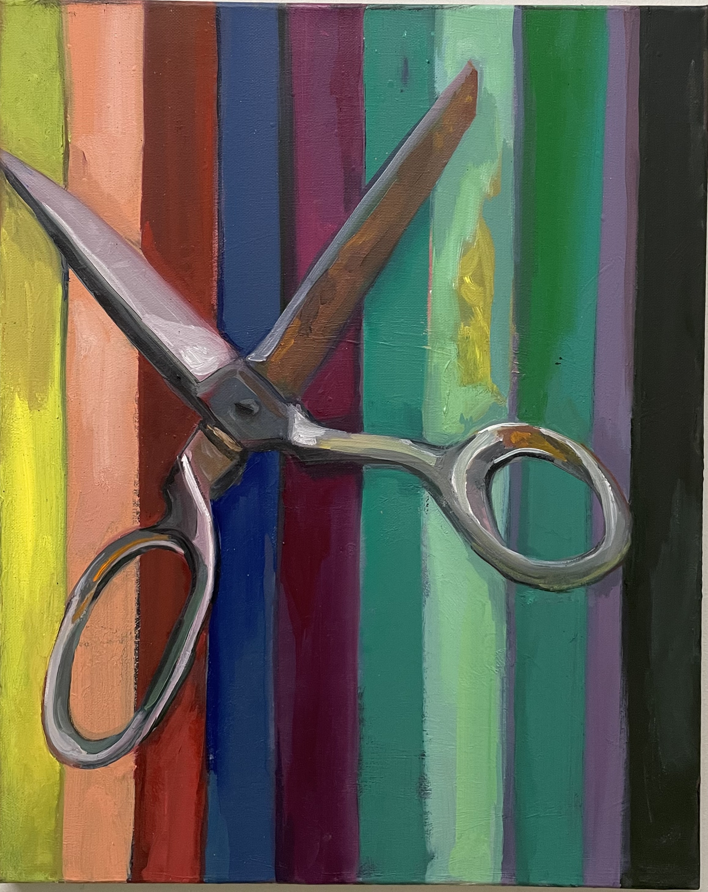 “Stripes and Scissors,” Oil on canvas, 2021.