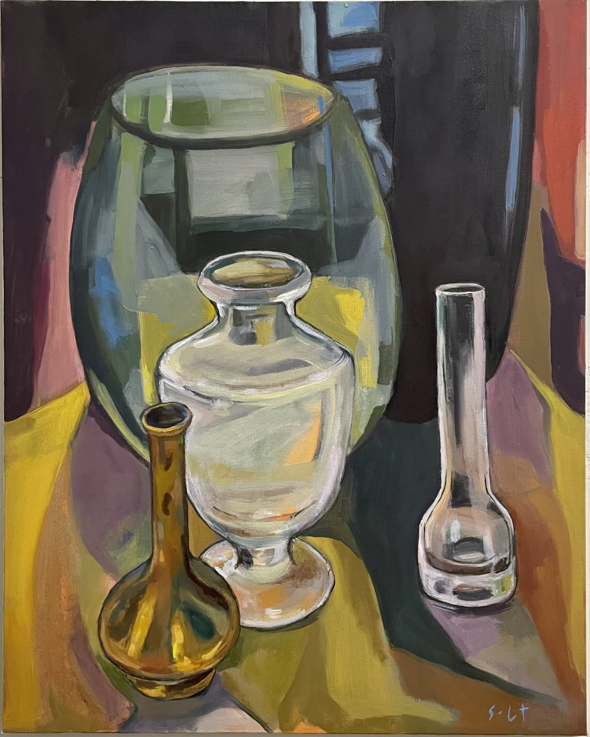 “Still Life, Vases,” oil on canvas, 24 x 30, 2020