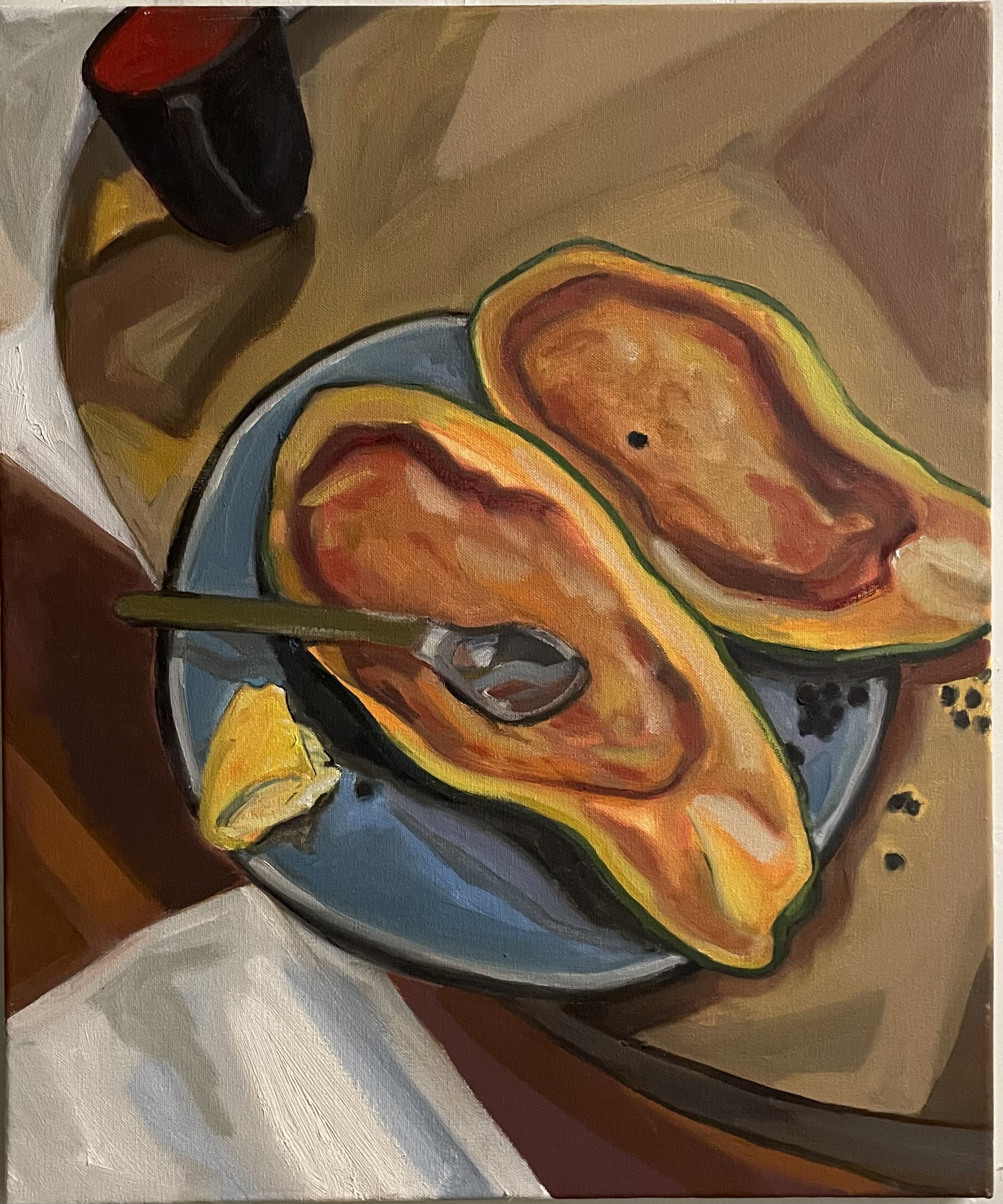 “Papaya,” oil on canvas, 20 x 24, 2021