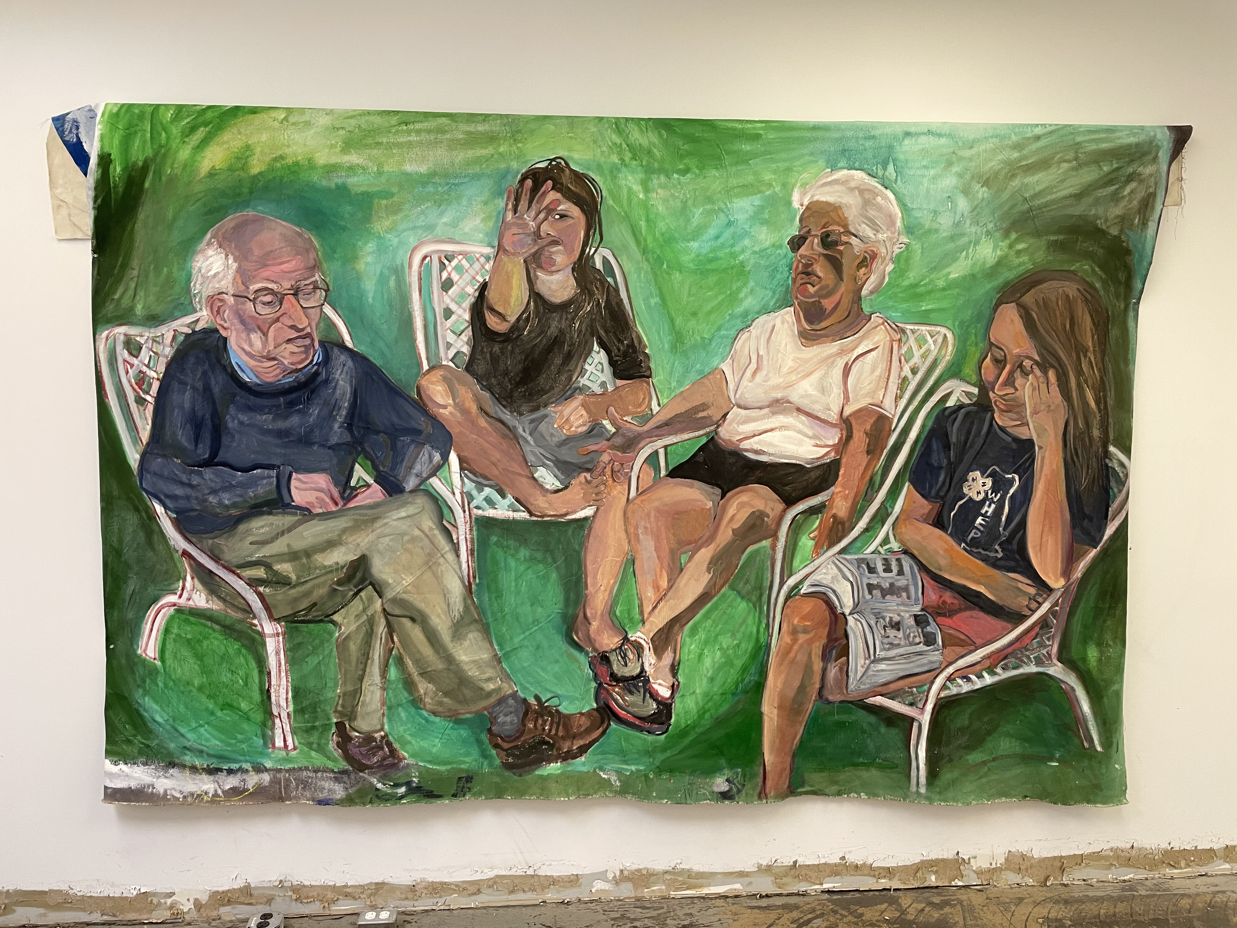 “This is What Family’s Like,” Oil on unstretched canvas. 72 inches x 108 inches. 2021.